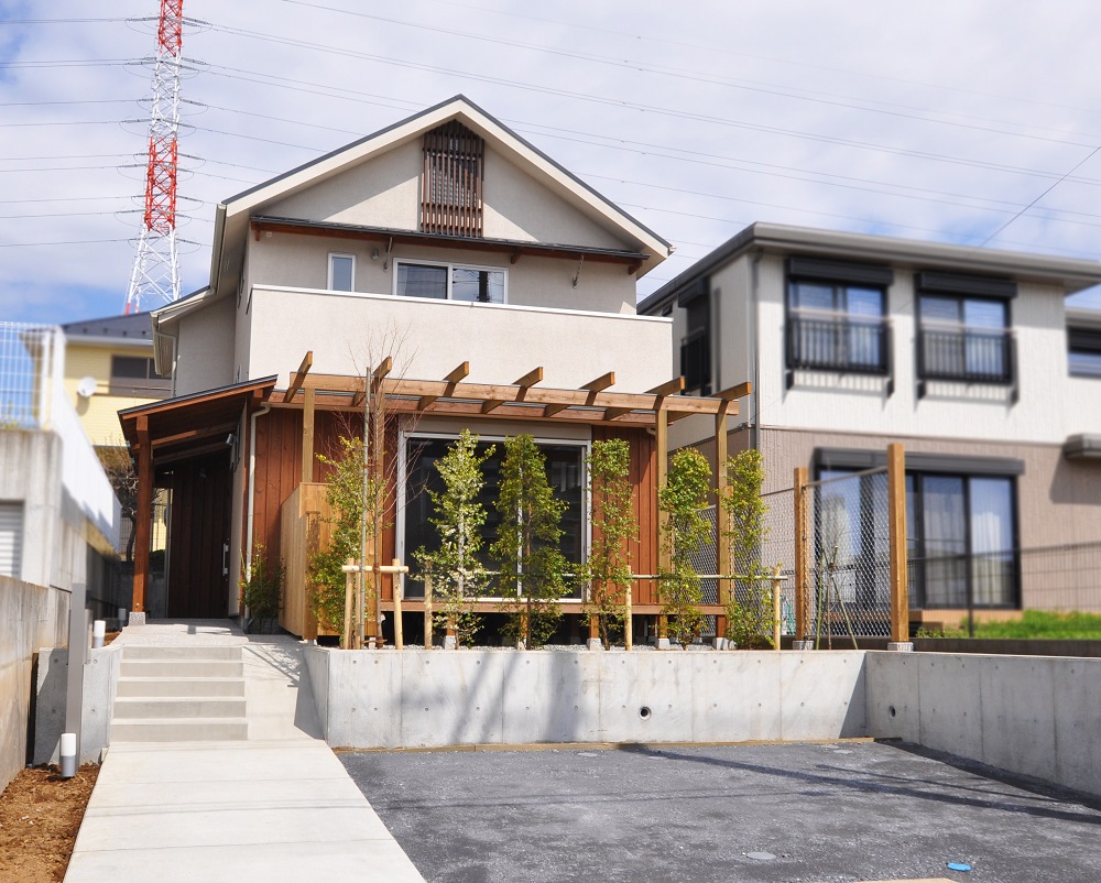 板張とパーゴラがアクセントに